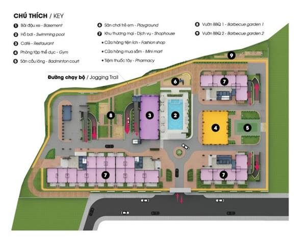 - Mật độ xây dựng: 41%- Tổng diện tích xây dựng sàn : 118,855 m2