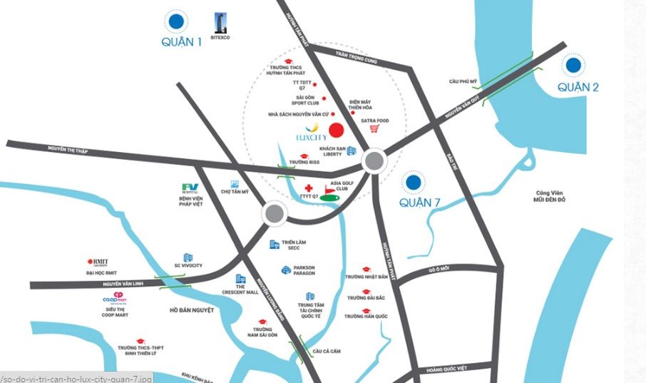 Nằm trên mặt tiền đường Huỳnh Tấn Phát, gần vòng xoay giữa Nguyễn Thị Thập và Huỳnh Tấn Phát, có thể nói Luxcity sở hữu một vị trí vàng tại khu Q.7.